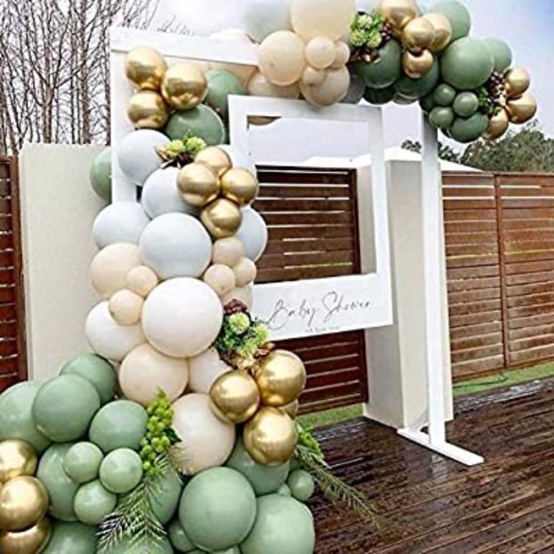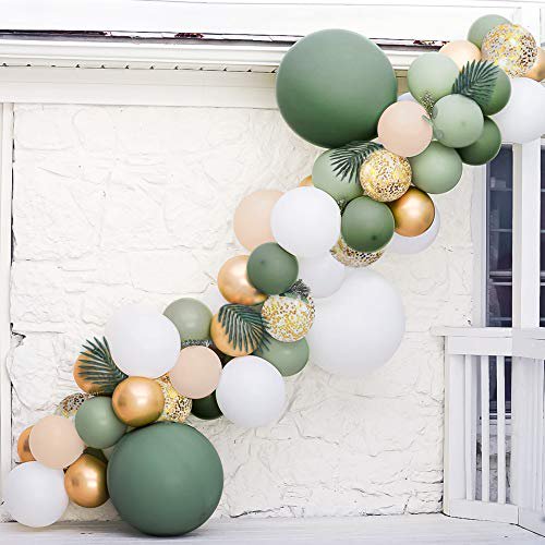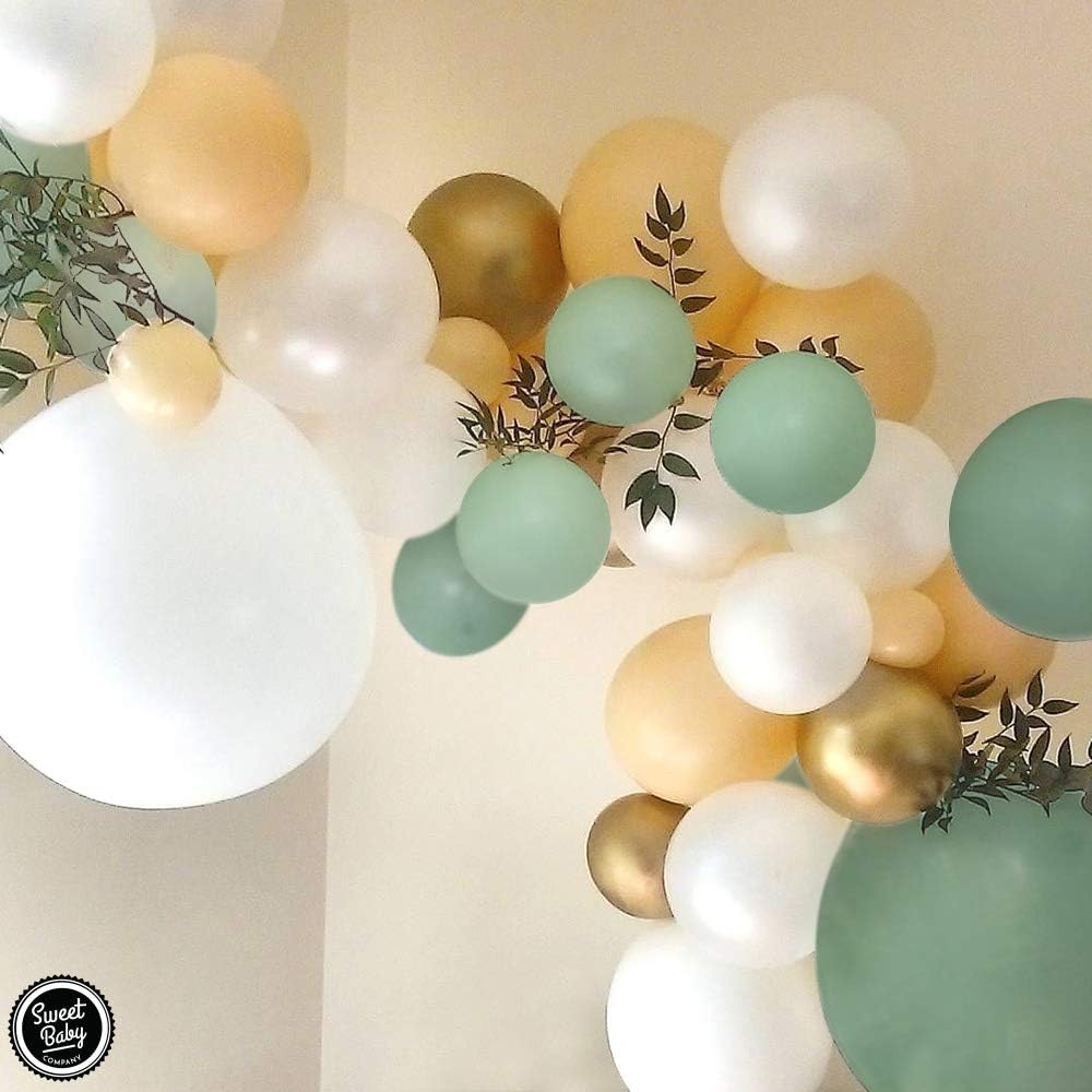 Sage green is an earthy grey green colour that tends to be more neutral than bright. Make sure the garlands overlap to create the effect that this is a single garland! Attach balloons to decorating strip. The sage green color has been trending over the last year in both fashion and home décor. Sage green and gold balloons!